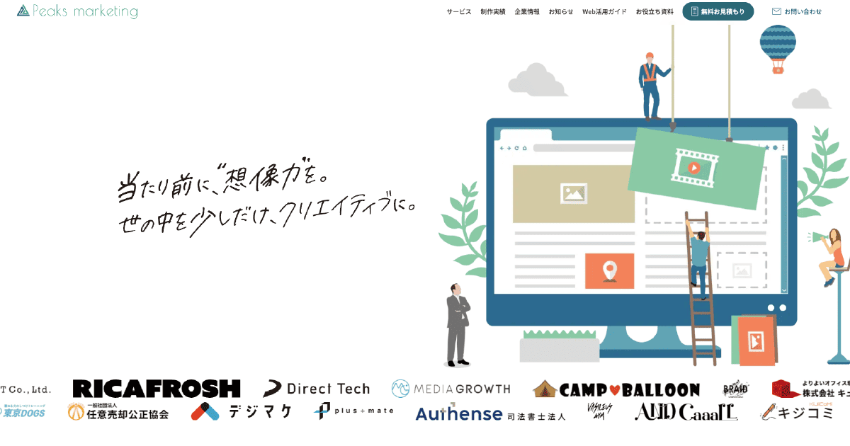 ピークスマーケティング様は、クリエイティブ制作と広告運用、Webサイト改善までを一気通貫で提供する企業様です。
