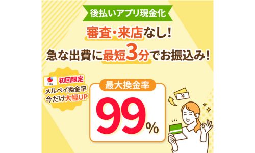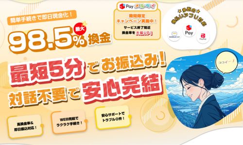 - メルペイ換金率最大98.5%
